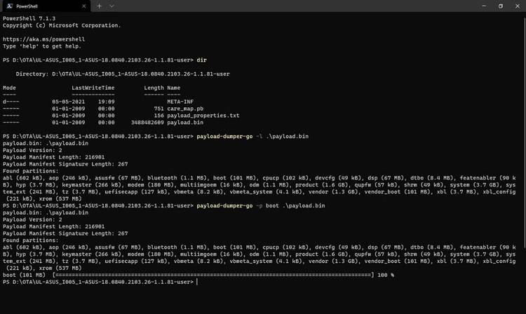Được gọi là payload-dumper-go fork này thậm chí còn cho phép người dùng cuối trích xuất một hình ảnh phân vùng mà không cần giải nén toàn bộ payload.bin, điều này đặc biệt hữu ích cho trường hợp sử dụng này.